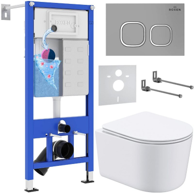 Унитаз с инсталляцией Roxen Simple Compact подвесной с крышкой, с кнопкой кв., матов.хром. Все характеристики |
