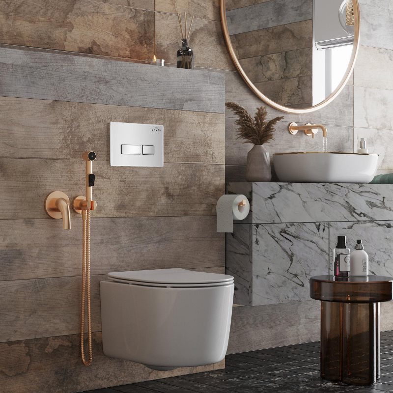 Унитаз с инсталляцией Roxen Simple Compact подвесной с крышкой, с кнопкой пр., белый/хром. Все характеристики |