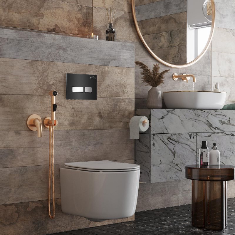 Унитаз с инсталляцией Roxen Simple Compact подвесной с крышкой, с кнопкой пр., черный/хром. Все характеристики |