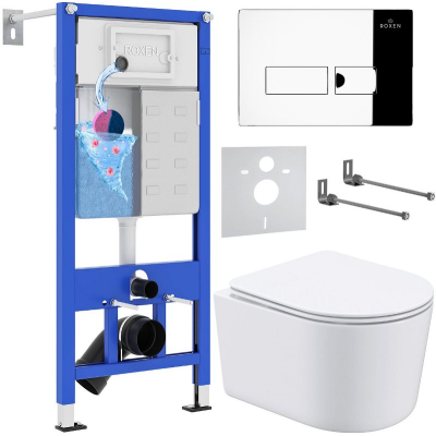 Унитаз с инсталляцией Roxen Simple Compact подвесной с крышкой, с кнопкой пр., хром. Все характеристики |