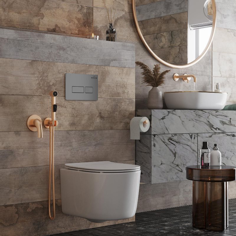 Унитаз с инсталляцией Roxen Simple Compact подвесной с крышкой, с кнопкой пр., серый бетон. Все характеристики |