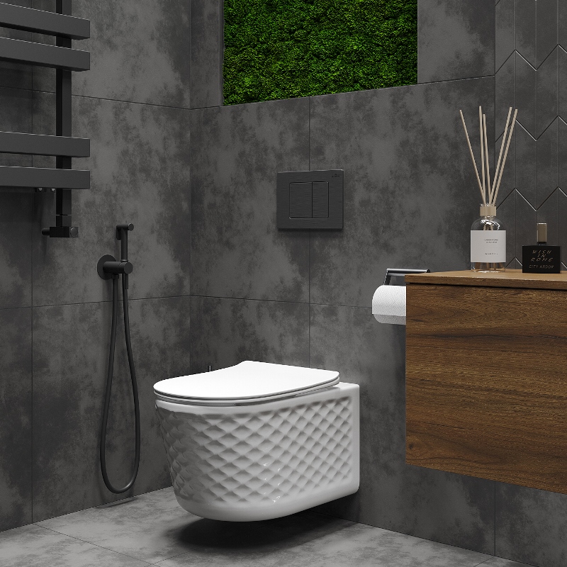 Унитаз с инсталляцией Roxen Vine Tornado подвесной с крышкой, с кв. кнопкой, матовый хром. Все характеристики |