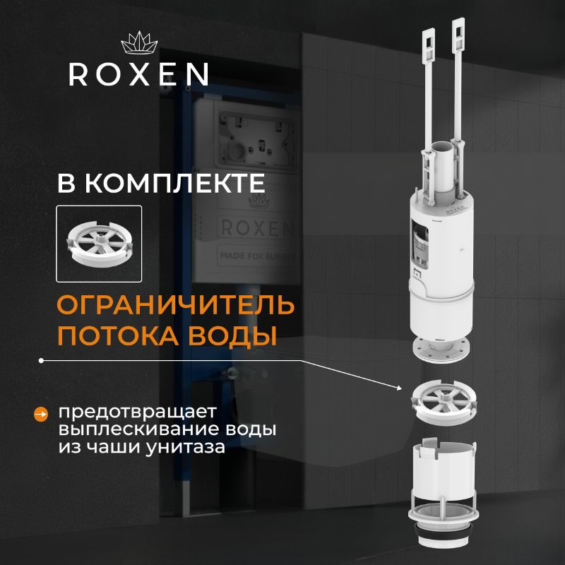 Комплект 6 в 1 Roxen StounFix Dual Fresh 979003 - готовое решение.Свойства материала. Подвесной унитаз Roxen Vine Tornado 530225-01 из санитарного фарфора PorCelain. Гладкая поверхность без пор препятствует перемещению бактерий. Антибактериальное покрытие Ultra Glide обеспечивает легкий уход, белизну и первоначальный внешний вид на долгие годы. Встроенный контейнер для гигиенических таблеток (аромадозатор). Безободковый. Чаша без внутреннего ободка Pro-Rimless cо смывом Tornado по всему периметру без разбрызгивания воды. Унитаз удаляет отходы с первого раза сильным круговым потоком, при этом экономно расходует воду. Сиденье. Легкосъемное сиденье Quick Fix с крышкой Soft Close из жесткого материала Duroplast повышенной прочности. Плавное, медленное, мягкое опускание микролифт не позволит крышке ударяться о борт унитаза. Цвет крышки с сиденьем идеально подходит в тон унитаза, сохранит свой первоначальный блеск на долго. Хромированные металлические петли. Производство. Компания Roxen основана в Финляндии. Благодаря современному оборудованию, инновационным технологиям и строгому скандинавскому подходу ее продукция заслуженно держится в топе продаж. Качество. Сантехника Roxen изготовлена только из проверенных, безопасных материалов. Каждое изделие проходит обязательную проверку на соответствие международным стандартам. Высокая надежность, безупречные линии и доступность делают изделия Роксен привлекательным выбором на любой вкус. Гарантия. Длительная гарантия на фаянс - 25 лет. Изображение на мониторе может отличаться от оригинала. Комплектность: