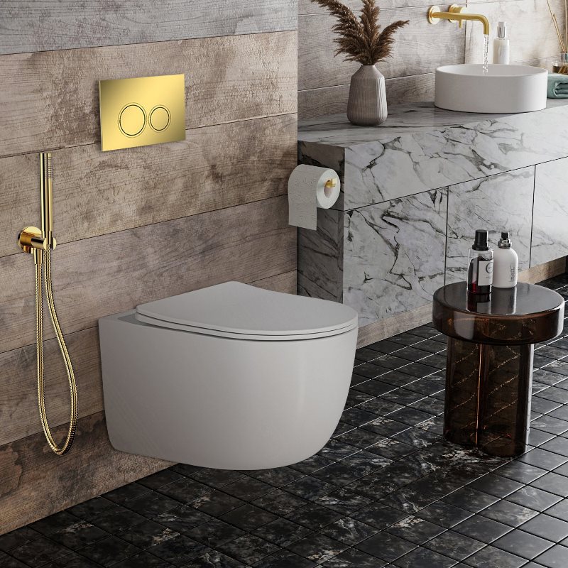 Унитаз с инсталляцией Roxen Vortex подвесной с крышкой, с кнопкой кр., золото. Все характеристики |