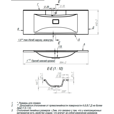 Накладной умывальник Andrea Elen 100 из литьевого мрамора.Свойство материала. Устойчив к образованию царапин, любому физическому и химическому воздействиям. Антибактериальная полированная поверхность без микропор, за которой легко ухаживать. Яркий блеск на долгие годы. Раковина Elen 100 см для монтажа на тумбу в ванную комнату. Производство. Компания Andrea выпускает сантехнику из композитных материалов. Современный автоматизированный завод в России. Качество. Высококачественные умывальники, столешницы, ванны, душевые поддоны из искусственного мрамора люкс-класса. Надежная и долговечная экологически безопасная продукция. Каждое изделие соответствует российским ГОСТам. Изображение и цвет на мониторе могут отличаться от оригинала. Комплектность: