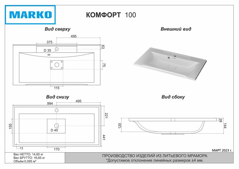 Только для продажи вместе с тумбой!Дополнительно комплектуется: смеситель, сифон, мебель. |