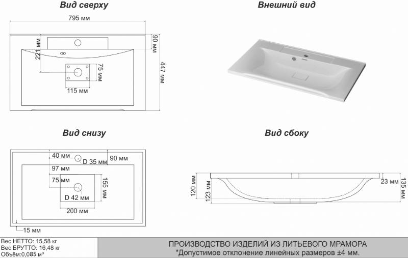 Только для продажи вместе с тумбой!Дополнительно комплектуется: смеситель, сифон, мебель. |