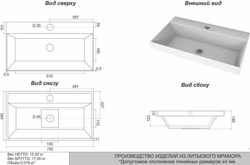 Только для продажи вместе с тумбой!Дополнительно комплектуется: смеситель, сифон, мебель. |