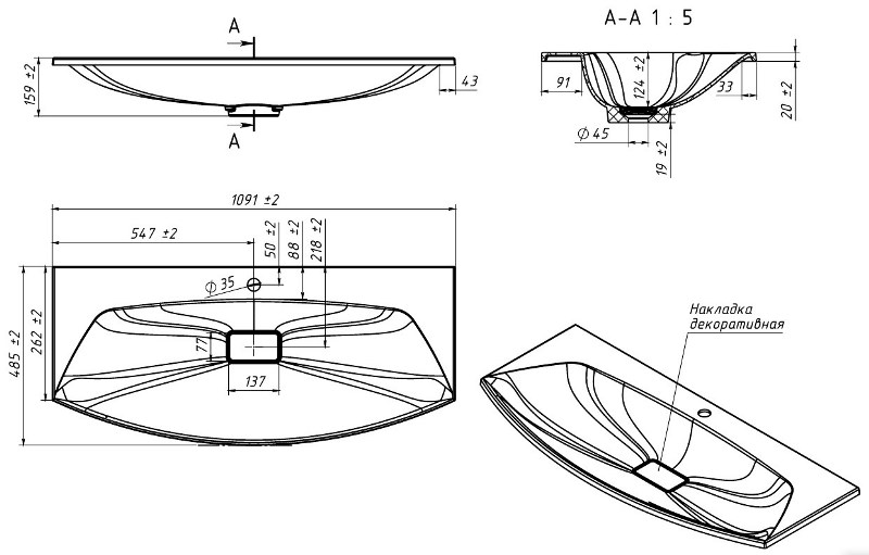 Раковина Belux Ганновер 1100, врезная. Все характеристики |