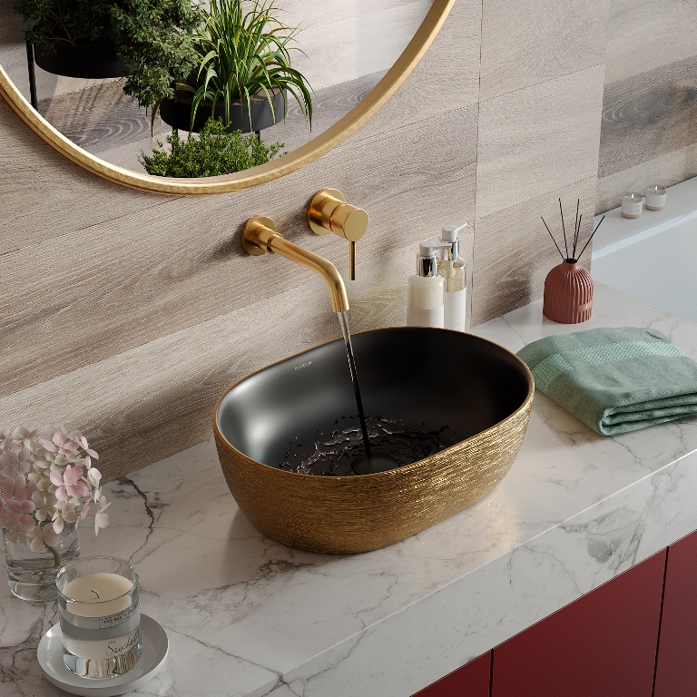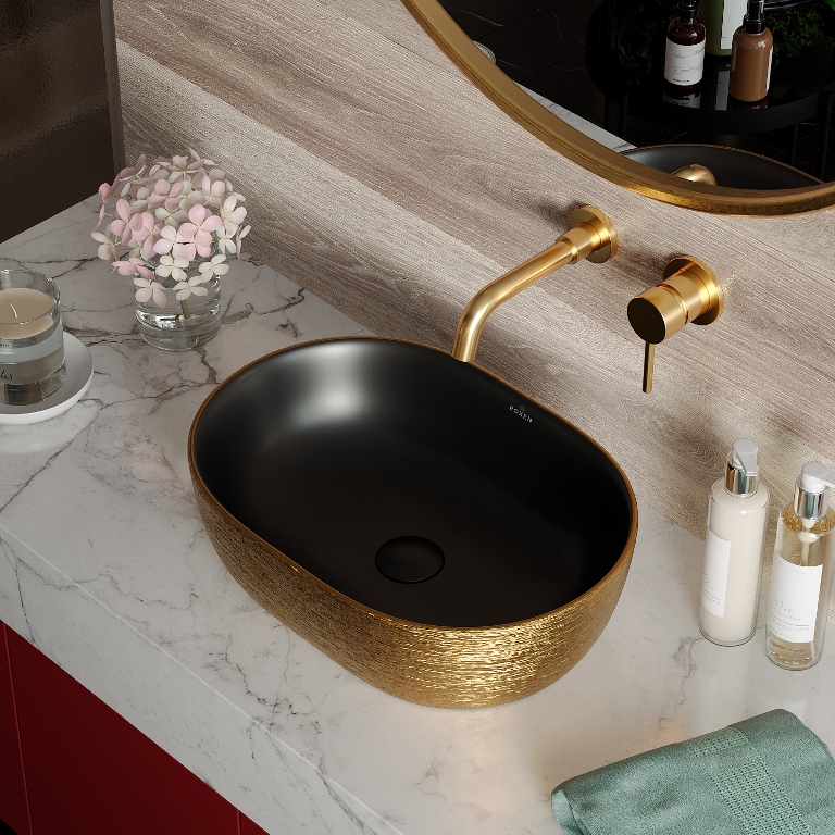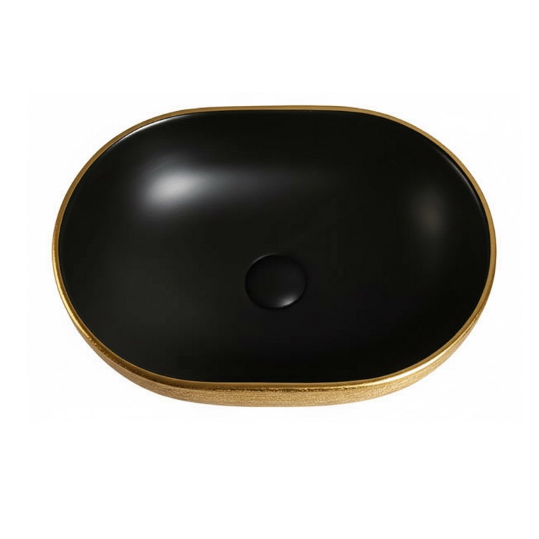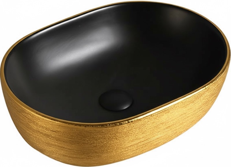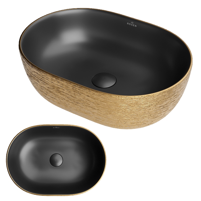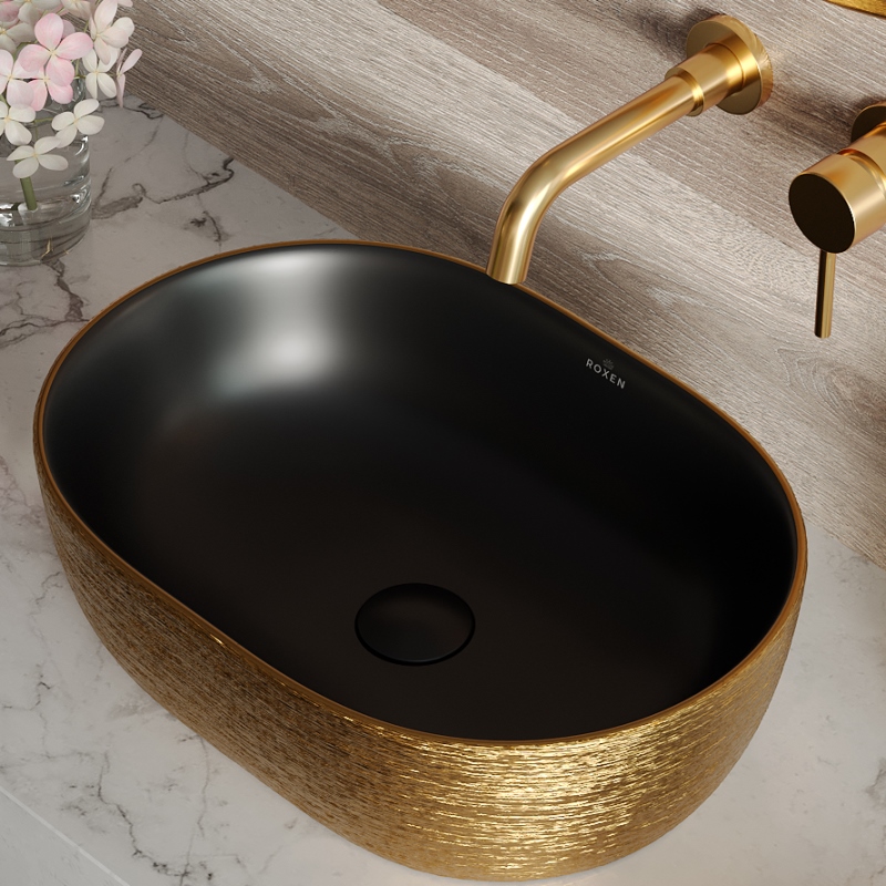 Раковина-чаша Roxen Sandra 48 на столешницу, матов. черный/золото. Все характеристики |