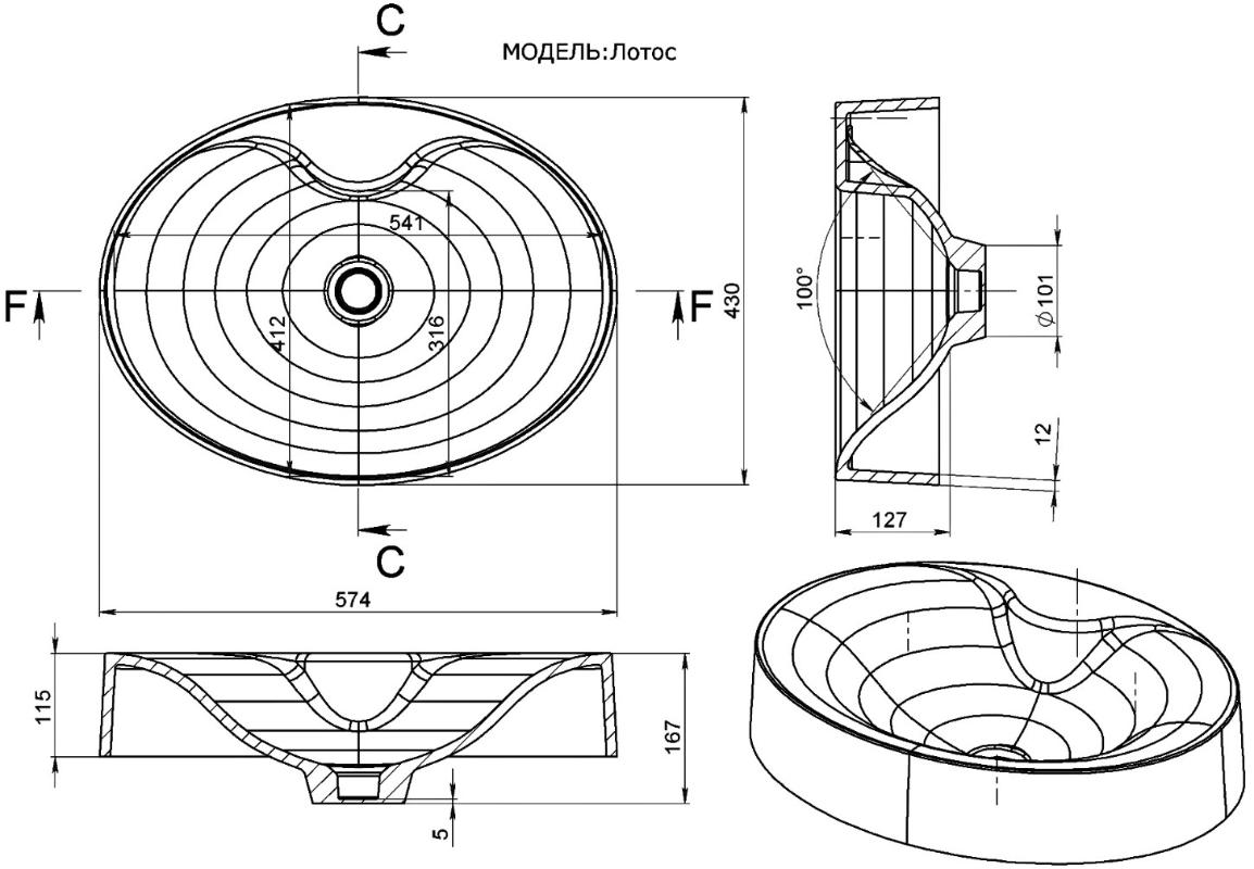 Раковина Formastone Лотос 57 на столешницу, белый. Все характеристики |
