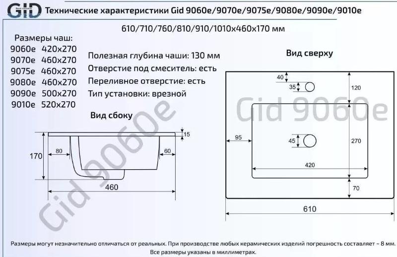 Раковина Gid 9010e 100 врезная, белый. Все характеристики |