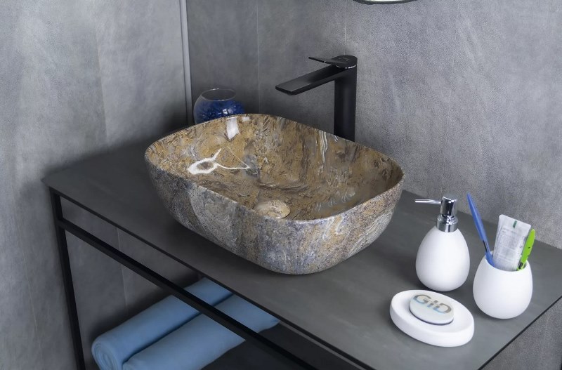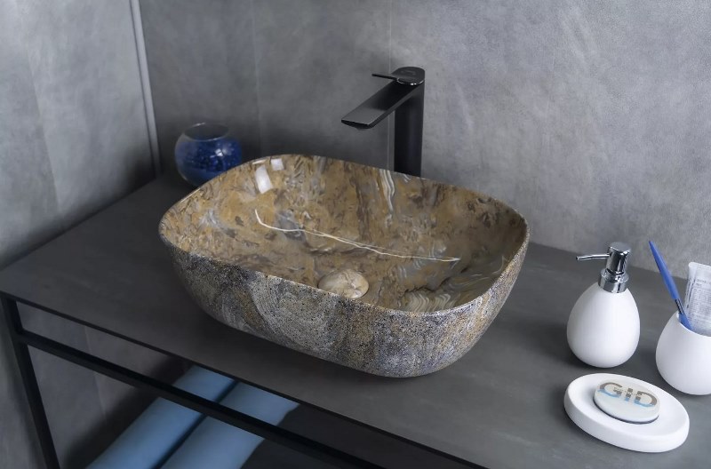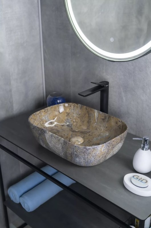 Накладной умывальник-чаша для столешницы Gid Mnc333T 54474 46 см из качественной керамики.Производство. Компания Gid крупный производитель сантехники. Современное оборудование. Собственный конструкторский отдел. Качество. Лучшее отборное сырье и материалы из надежных источников. Тщательный контроль на каждом этапе. Внимание! Рисунок текстуры камня уникален для каждой раковины. Изображение и цвет на мониторе могут отличаться от оригинала. Комплектность: