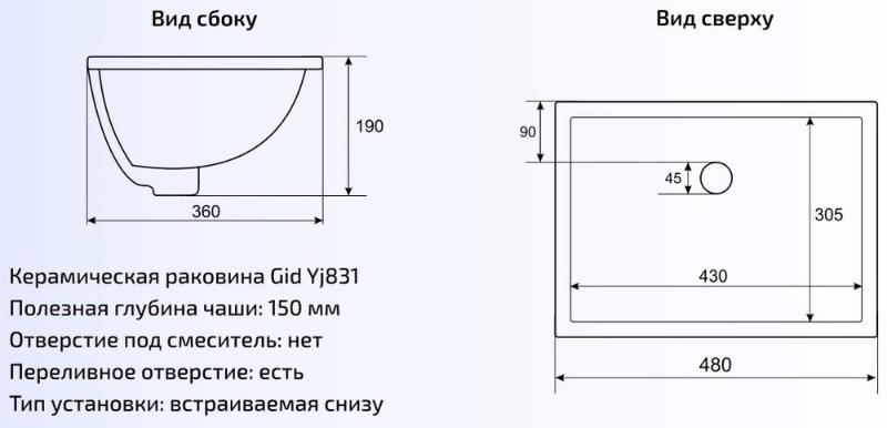 Раковина Gid YJ831 46 врезная, белый. Все характеристики |