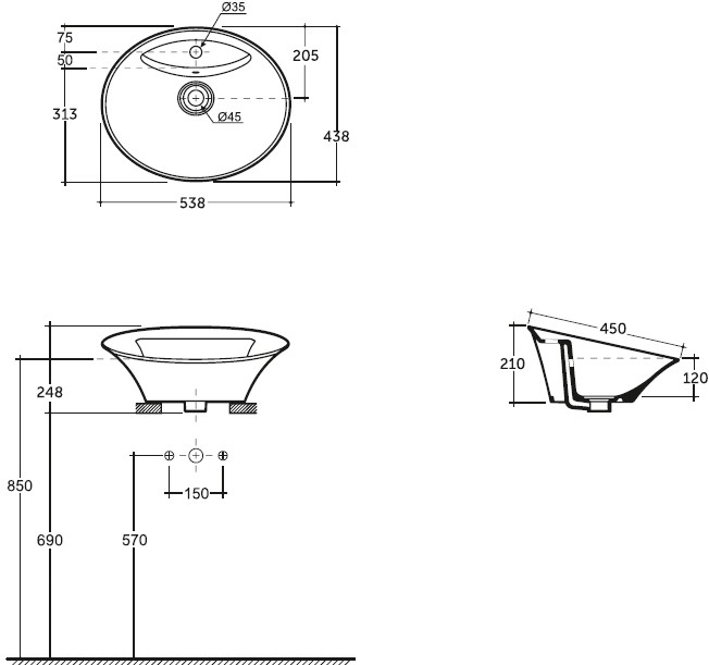 Раковина Керамин Артвин 55 для столешницы. Все характеристики |