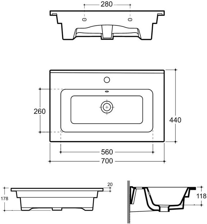 Раковина Керамин Женева 70 ФС врезная. Все характеристики |