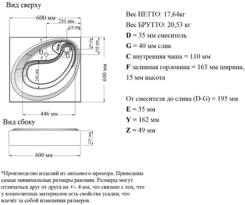 Умывальник на стиральную машину Madera Ameli 60 4627173210416 из литьевого мрамора.Свойство материала. Устойчив к образованию царапин, любому физическому и химическому воздействиям. Антибактериальная полированная поверхность без микропор, за которой легко ухаживать. Яркий блеск на долгие годы. Раковина Ameli 60 см 4627173210416 для монтажа над стиральной машиной. Производство. Компания Madera выпускает сантехнику из композитных материалов. Современный автоматизированный завод в России. Качество. Высококачественные умывальники, столешницы, ванны, душевые поддоны из искусственного мрамора люкс-класса. Надежная и долговечная экологически безопасная продукция. Каждое изделие соответствует российским ГОСТам. Изображение и цвет на мониторе могут отличаться от оригинала. Комплектность:
