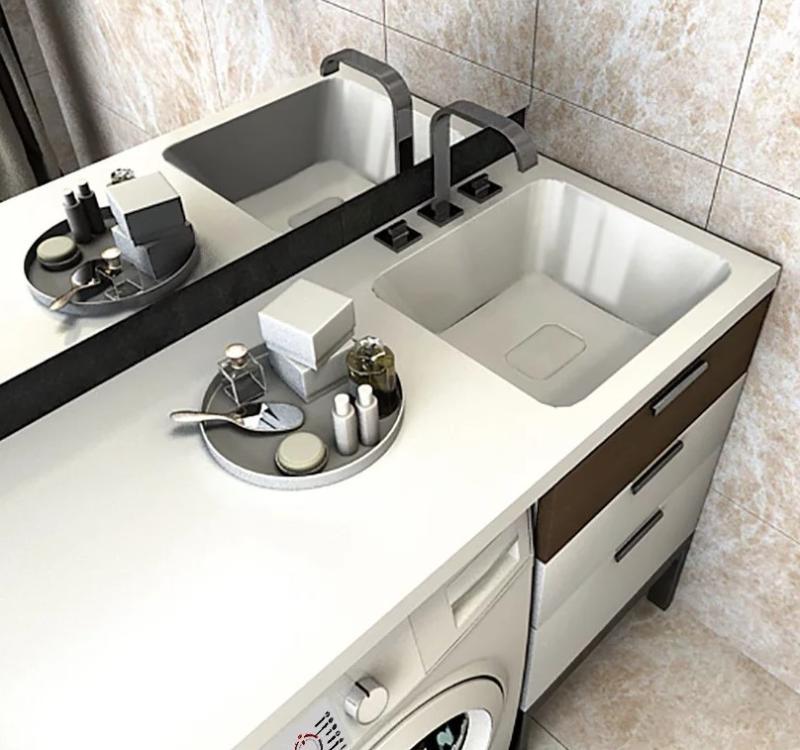 Умывальник на стиральную машину Madera Kamilla 110 из литьевого мрамора.Свойство материала. Устойчив к образованию царапин, любому физическому и химическому воздействиям. Антибактериальная полированная поверхность без микропор, за которой легко ухаживать. Яркий блеск на долгие годы. Раковина Kamilla 110 см для монтажа на тумбу и над стиральной машиной. Производство. Компания Madera выпускает сантехнику из композитных материалов. Современный автоматизированный завод в России. Качество. Высококачественные умывальники, столешницы, ванны, душевые поддоны из искусственного мрамора люкс-класса. Надежная и долговечная экологически безопасная продукция. Каждое изделие соответствует российским ГОСТам. Изображение и цвет на мониторе могут отличаться от оригинала. Комплектность: