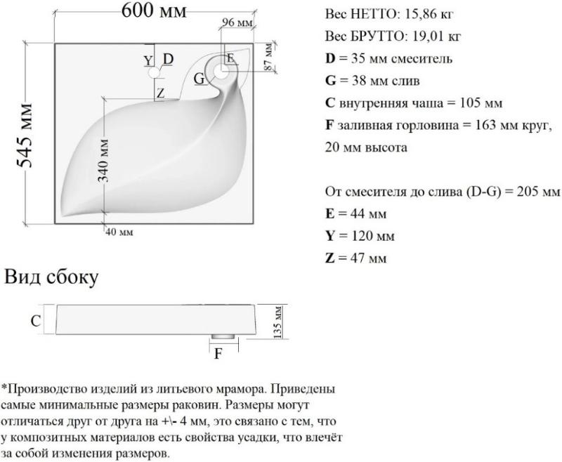 Умывальник на стиральную машину Madera List 55 4627173210546 из литьевого мрамора.Свойство материала. Устойчив к образованию царапин, любому физическому и химическому воздействиям. Антибактериальная полированная поверхность без микропор, за которой легко ухаживать. Яркий блеск на долгие годы. Раковина List 55 см 4627173210546 для монтажа над стиральной машиной. Производство. Компания Madera выпускает сантехнику из композитных материалов. Современный автоматизированный завод в России. Качество. Высококачественные умывальники, столешницы, ванны, душевые поддоны из искусственного мрамора люкс-класса. Надежная и долговечная экологически безопасная продукция. Каждое изделие соответствует российским ГОСТам. Изображение и цвет на мониторе могут отличаться от оригинала. Комплектность: