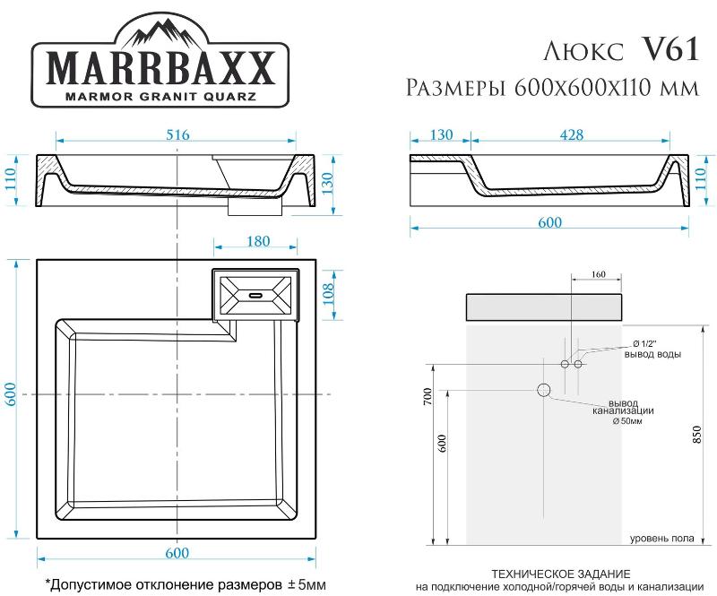 Раковина Marrbaxx Люкс V61D1 60x60 на стиральную машину, сигн. белый. Все характеристики |