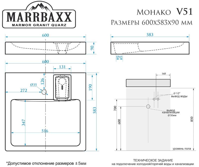 Раковина Marrbaxx Монако V51D1 60x60 на стиральную машину, сигн. белый. Все характеристики |