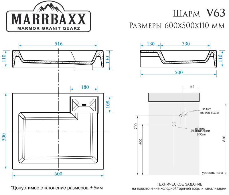 Раковина Marrbaxx Шарм V63D1 60x50 на стиральную машину, сигн. белый. Все характеристики |
