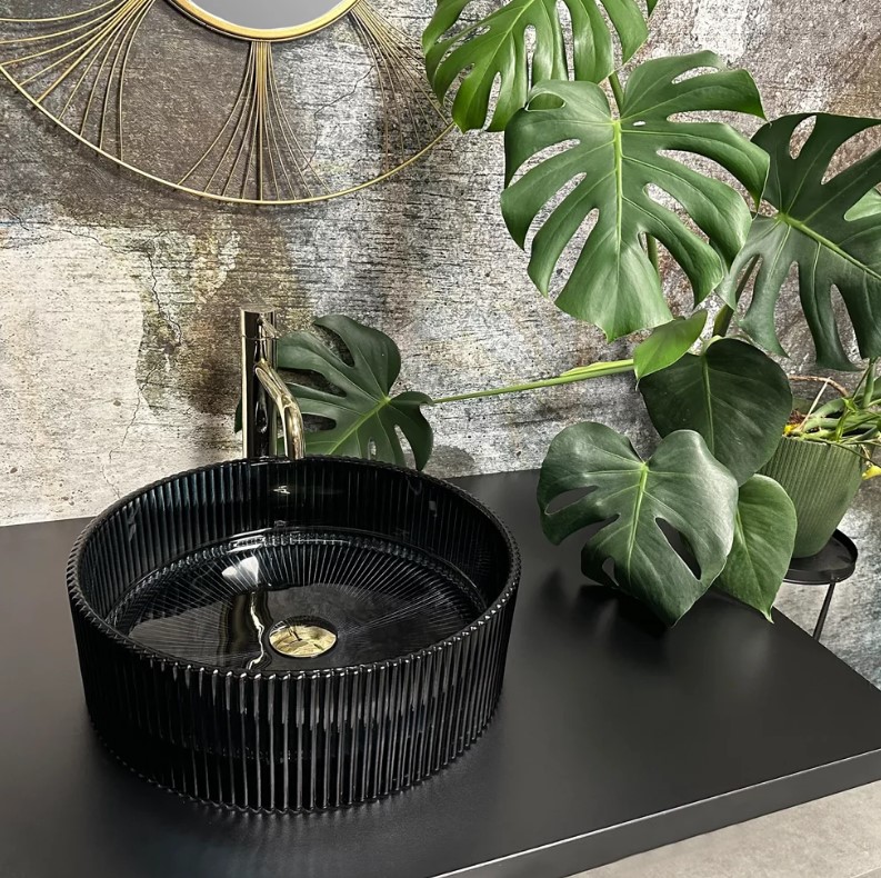 Раковина Rea Stella 39.5 на столешницу, стекло, черный. Все характеристики |