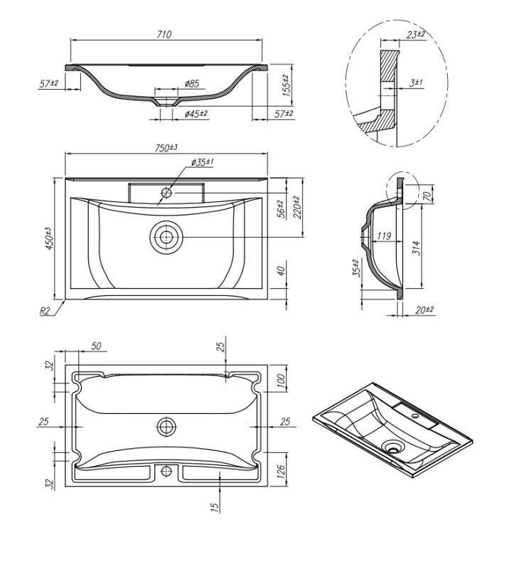 Раковина Roxen Ariel 75 мебельная. Все характеристики |