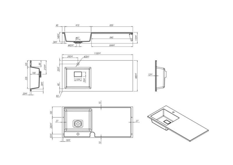 Раковина Roxen Faber 110L на стиральную машину, левая. Все характеристики |