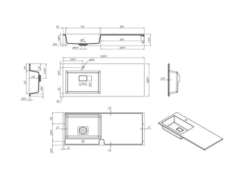 Раковина Roxen Faber 120L black на стиральную машину, левая. Все характеристики |