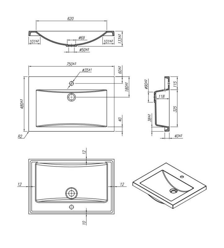 Раковина Roxen Iris 75 мебельная. Все характеристики |