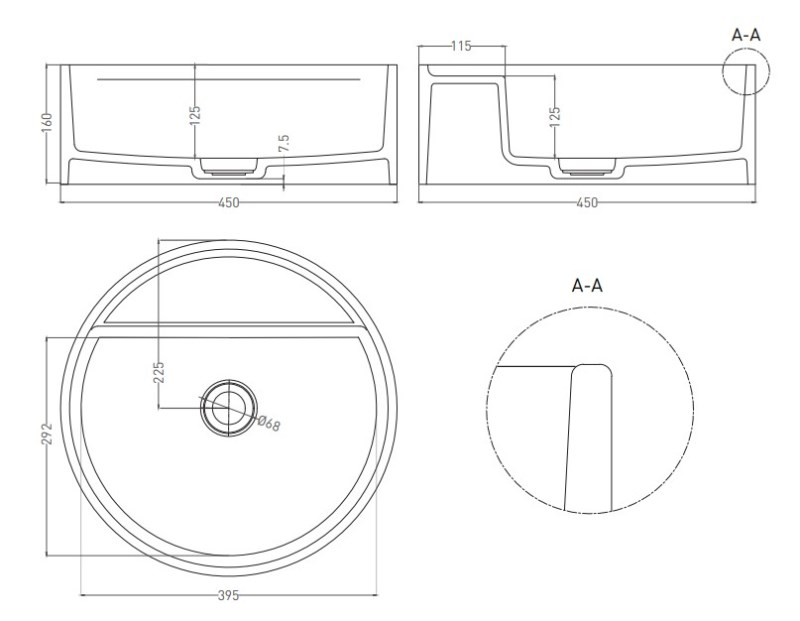 Раковина Salini Armonia Top 02 45 на столешницу, S-Sense, белый глянцевый. Все характеристики |