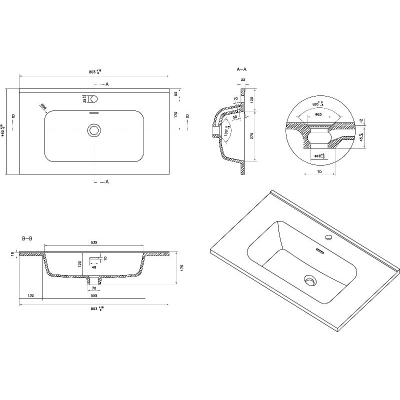 Раковина Uptrend Venta 80 врезная, глянцевый белый. Все характеристики |
