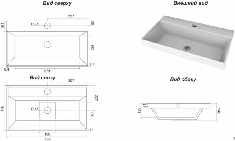 Раковина Vako Слим 80 мебельная, 5020800. Все характеристики |