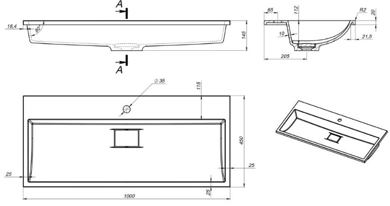 Раковина Versalia Absolute 100 врезная. Все характеристики |