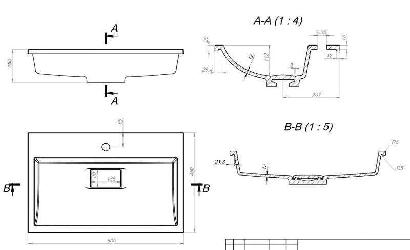 Раковина Versalia Absolute 60 врезная. Все характеристики |