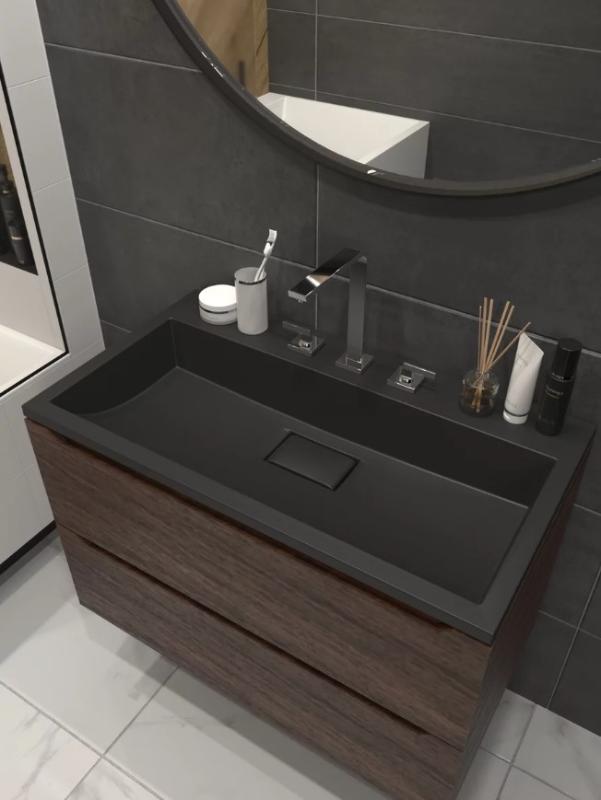 Встраиваемый умывальник Versalia Absolute 70 см черный глянец из литьевого мрамора.Изображение и цвет на мониторе могут отличаться от оригинала. Комплектность: