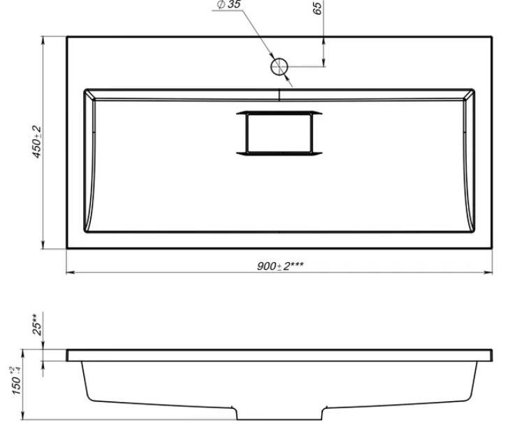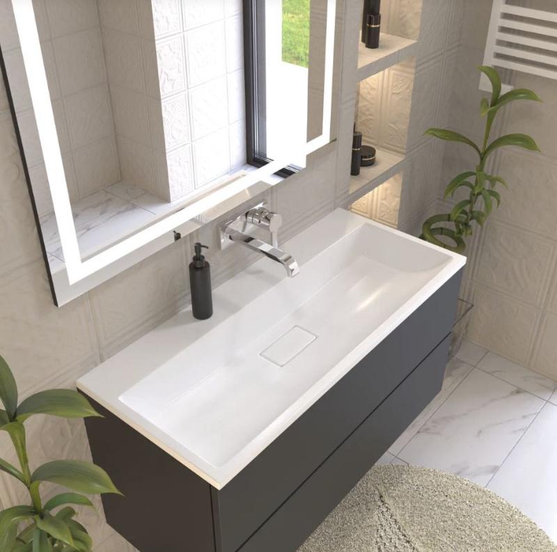 Встраиваемый умывальник Versalia Absolute 90 см из литьевого мрамора.Изображение и цвет на мониторе могут отличаться от оригинала. Комплектность: