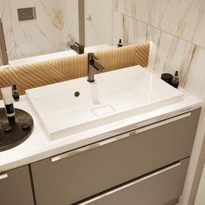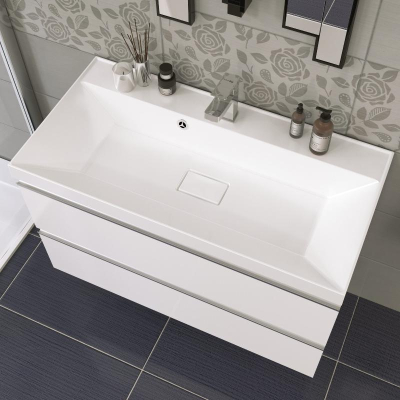 Встраиваемый умывальник Versalia Bazis 100 см ver0001 из литьевого мрамора.Изображение и цвет на мониторе могут отличаться от оригинала. Комплектность: