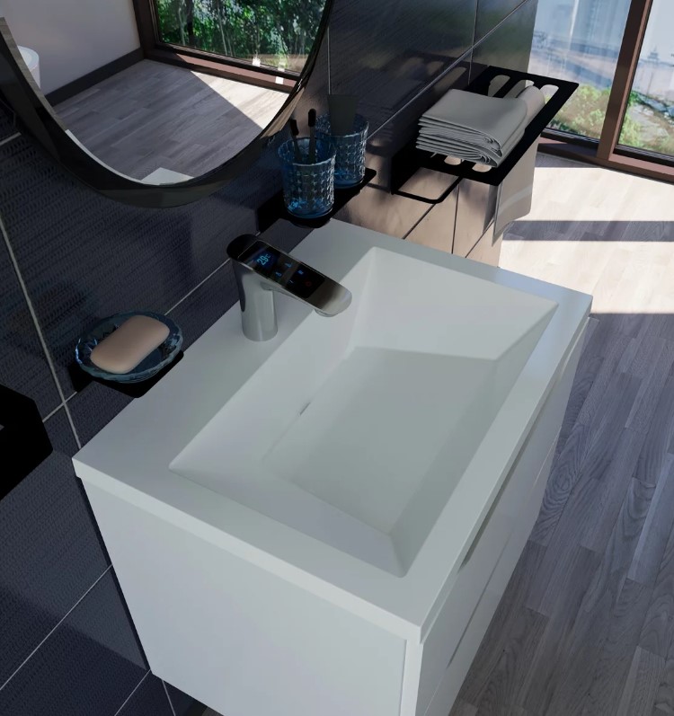 Встраиваемый умывальник Versalia Lotos 60 см ver0049 из литьевого мрамора.Свойства. Щелевой слив. Изображение и цвет на мониторе могут отличаться от оригинала. Комплектность: