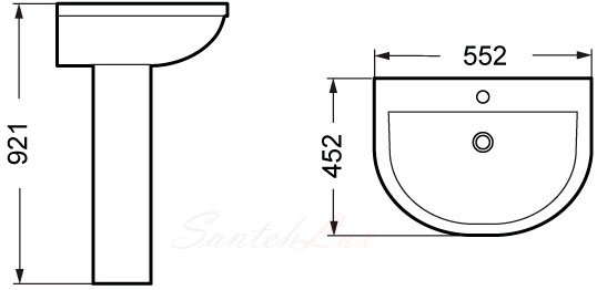 Дополнительно комплектуется: смеситель, сифон, пьедестал. |