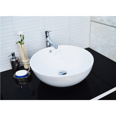 Умывальник CeramaLux N 9003А 43 на столешницу из качественной керамики.Свойства. Отдельностоящая накладная раковина. С переливом и без отверстия под смеситель. Высота-17.5 см. Диаметр слива-45 мм. Внутренние размеры: ширина-41 см, глубина-41 см, высота-13 см. Размеры установочного места: ширина-23 см, глубина-23 см. Производство. Компания CeramaLux одна из крупнейших производителей сантехники. Занимает лидирующую позицию на рынке изделий для санузла. Современное европейское оборудование, широкая складская база и собственный транспортный парк. Качественная сантехника по приемлемым ценам. Дизайн. CeramaLux сотрудничает с дизайнерскими студиями Европы и участвует в международных выставках, укрепляя свое положение на рынке современных и актуальных решений для ванных комнат. Умывальник CeramaLux N 9003А 43 см на столешницу. Гарантия. Длительная гарантия - 5 лет. Изображение и цвет на мониторе могут отличаться от оригинала. Комплектность: