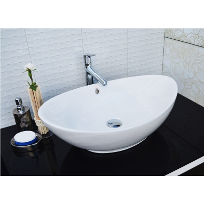 Умывальник CeramaLux N 9019 59 на столешницу из качественной керамики.Свойства. Отдельностоящая накладная раковина. С переливом и без отверстия под смеситель. Высота-18.5 см. Диаметр слива-45 мм. Внутренние размеры: ширина-57 см, глубина-28 см, высота-14 см. Размеры установочного места: ширина-34 см, глубина-23 см. Производство. Компания CeramaLux одна из крупнейших производителей сантехники. Занимает лидирующую позицию на рынке изделий для санузла. Современное европейское оборудование, широкая складская база и собственный транспортный парк. Качественная сантехника по приемлемым ценам. Дизайн. CeramaLux сотрудничает с дизайнерскими студиями Европы и участвует в международных выставках, укрепляя свое положение на рынке современных и актуальных решений для ванных комнат. Умывальник CeramaLux N 9019 59 см на столешницу. Гарантия. Длительная гарантия - 5 лет. Изображение и цвет на мониторе могут отличаться от оригинала. Комплектность: