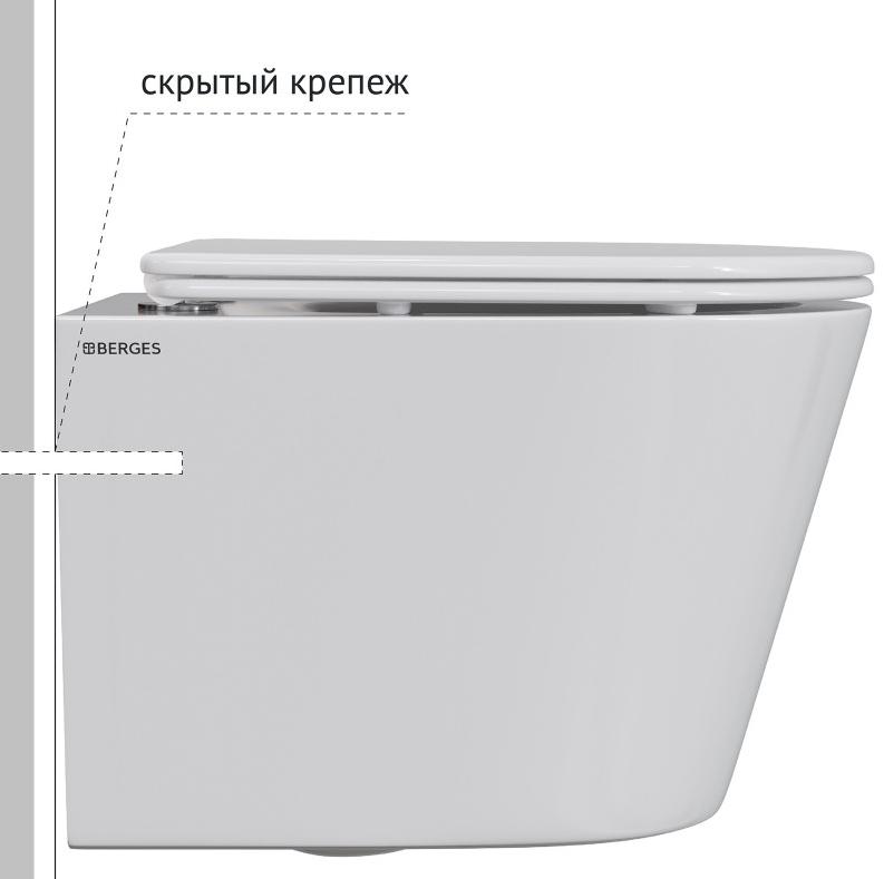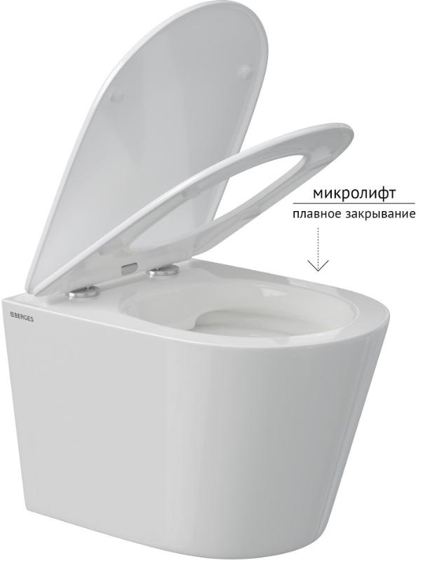 Унитаз Berges Vita Rimless подвесной, укороченный, с крышкой микролифт, белый. Все характеристики |