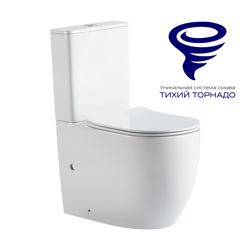 Унитаз напольный безободковый Prato Бьянко с крышкой, универсальный выпуск. Все характеристики |