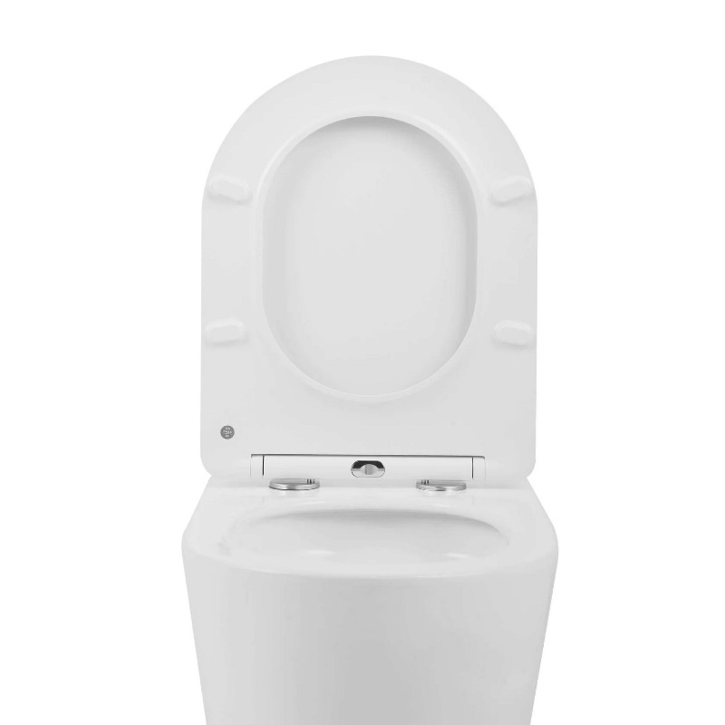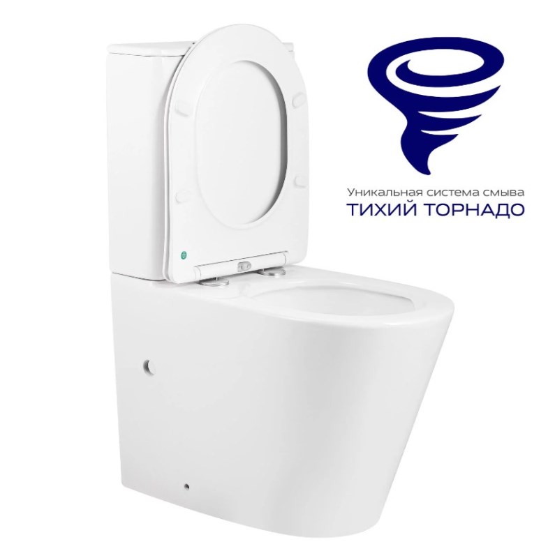 Унитаз напольный безободковый Prato Рим с крышкой, универсальный выпуск. Все характеристики |