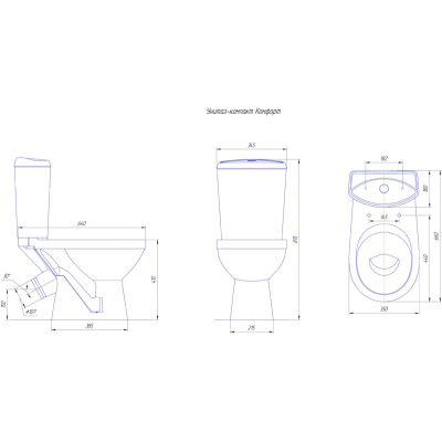 Материал-фарфор. Система анти-всплеск. Полный омыв. Объем смыва 3/6 л. Комплектность: