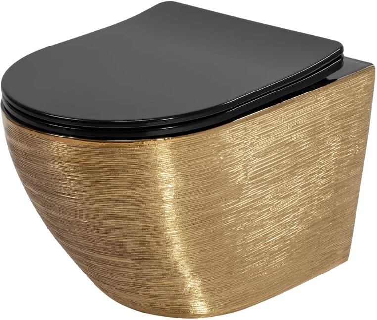 Унитаз Rea Carlo Flat Mini Gold White подвесной, с крышкой микролифт, золото\белый. Все характеристики |