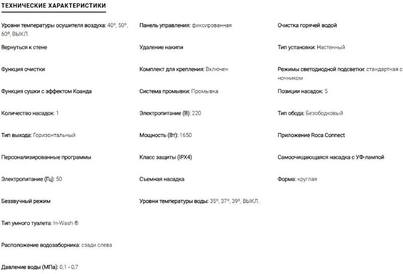 Умный электронный унитаз Roca Ona Rimless In-Wash подвесной, с крышкой, белый. Все характеристики |