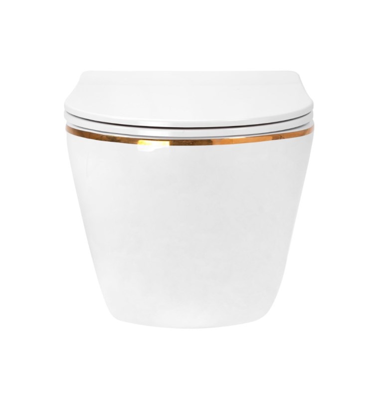 Подвесной унитаз Roxen Antares Gold 530110-01G из санитарного фарфора PorCelain.Свойства материала. Гладкая поверхность без пор препятствует перемещению бактерий. Антибактериальное покрытие Ultra Glide обеспечивает легкий уход, белизну и первоначальный внешний вид на долгие годы. Золотой ободок по контуру унитаза. Безободковый. Чаша без внутреннего ободка Pro-Rimless c круговым смывом по всему периметру без разбрызгивания воды. Унитаз удаляет отходы с первого раза сильным каскадным потоком, при этом экономно расходует воду. Монтаж. Унитаз Antares Gold 530110-01G с подвесным монтажом имеет стандартное крепление и подходит для установки на любую инсталляцию. Сиденье. Тонкое легкосъемное сиденье Quick Fix с крышкой Soft Close из жесткого материала Duroplast повышенной прочности. Плавное, медленное, мягкое опускание микролифт не позволит крышке ударяться о борт унитаза. Цвет крышки с сиденьем идеально подходит в тон унитаза, сохранит свой первоначальный блеск на долго. Хромированные металлические петли. Производство. Компания Roxen основана в Финляндии. Благодаря современному оборудованию, инновационным технологиям и строгому скандинавскому подходу ее продукция заслуженно держится в топе продаж. Качество. Сантехника Roxen изготовлена только из проверенных, безопасных материалов. Каждое изделие проходит обязательную проверку на соответствие международным стандартам. Высокая надежность, безупречные линии и доступность делают изделия Роксен привлекательным выбором на любой вкус. Гарантия. Длительная гарантия на фаянс - 25 лет. Изображение на мониторе может отличаться от оригинала. Комплектность: